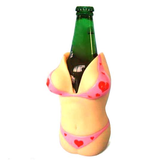 The featuring item is a bottle holder with the shape of a bikini body. It is made of soft PVC materials which fits your hand and is non-slip and comfortable to hold.