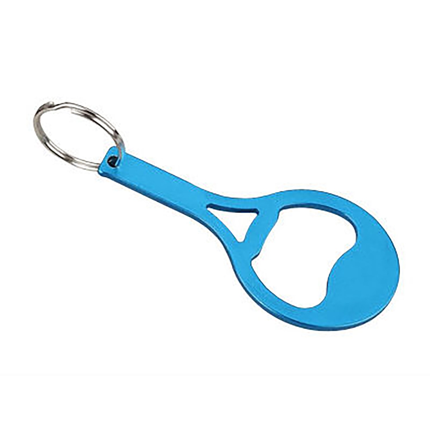 Racket shaped bottle opener keychain the following features :