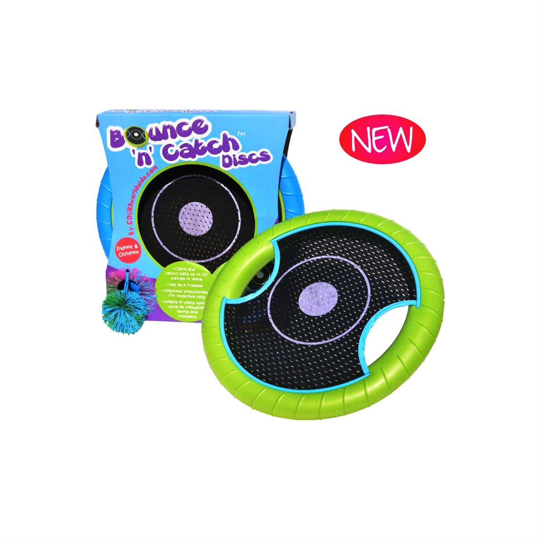 Bounce n Catch Discs and catch and return balls up to 20 metres or more. Adapts to many sports such as Volleyball, Tennis, and Rounders. Acts as a throwing disc by itself and can be used by one, two or more individuals. Provides unlimited possibilities for inventive play. Use indoors and outdoors. Pack includes two 30cm mini sports discs and soft ball.