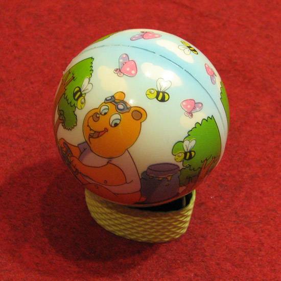 This is a bouncing ball with self-designed cartoon patterns. It is comparatively soft and can only bounce at a modest level which makes it a fun and safe toy to play with. It is suitable for children aged 3 or above.