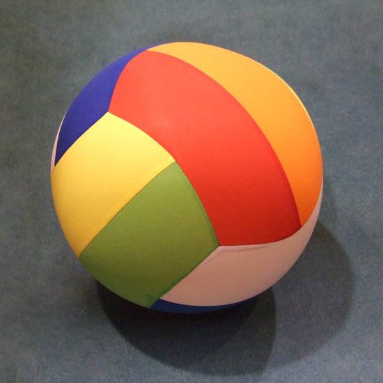 This is an inflatable bouncing ball. It is made of plush materials in volleyball style. It comes in cheerful rainbow colours.