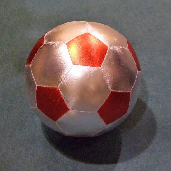 Featured is an inflatable bouncing ball. It is made of shimmering materials in football style.