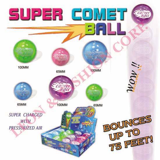 The super comet ball is super charged with pressurized air. It can bounce up to 75 feet. This powerful bouncing ball is an amazing toy with great fun.
