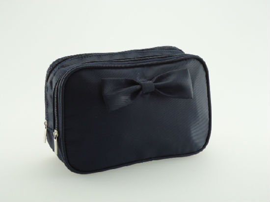 • Bow decor nylon two compartment cosmetic bag.