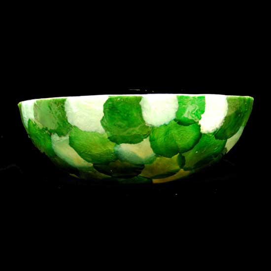 The design of this bowl boasts a cheerful style. The surface of the bowl is paved with polished capiz shells and painted in white and green. The hemispherical shape makes it perfect for serving fruit and salad.