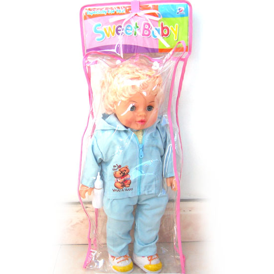 This is a cute and attractive boy doll with exquisite details. It is well dressed in a blue-toned casual wear set. This cuddly boy doll makes an ideal gift solution for your little one.