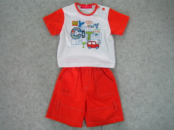 • This boy's clothing set includes a T-shirt and a pair of pants.