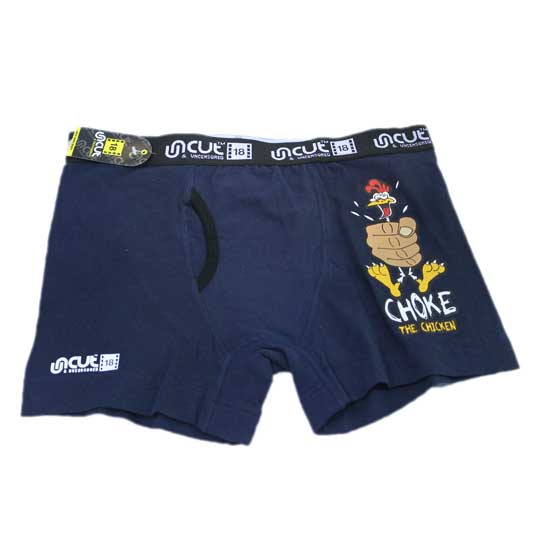 This pair of blue boxers is especially designed for boys. The humorous design is highlighted by a choking chicken pattern on the side. Made of quality material, this pair of boxers is comfortable to wear.