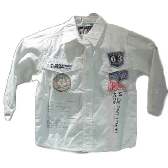The boys' shirt is made of cotton poplin for additional wearing comfort. The shirt comes in a white color highlighted by stylish embroidery and patched pockets. This shirt makes a chic piece for kids.