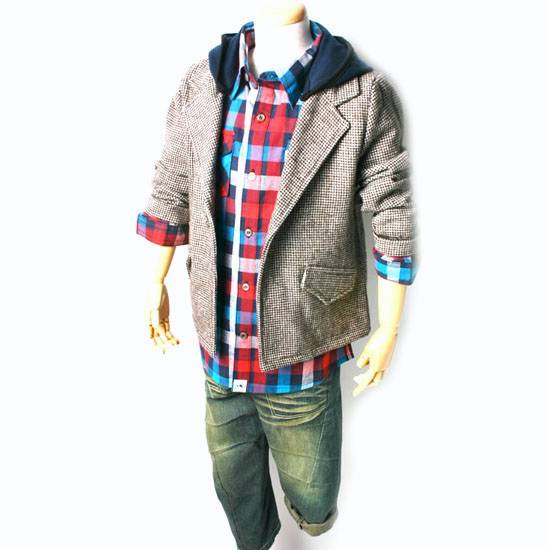 The boys' fashion set comes with a shirt, a jacket and a pair of jeans. The shirt comes in colorful checkered patterns and the jacket has a hood for a unique touch. The pair of jeans bestows heavy-washed and crinkle effects.