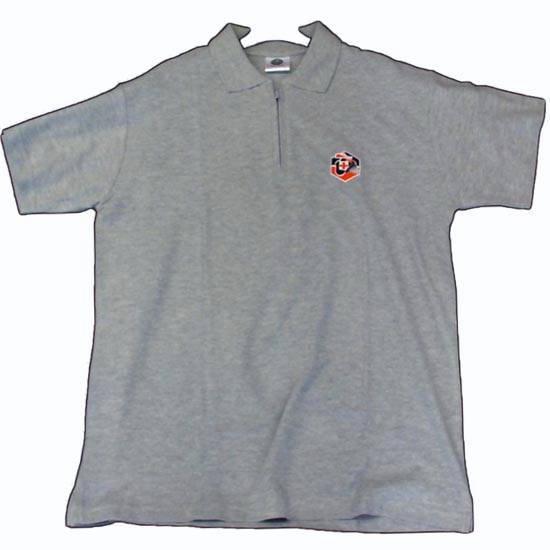 The featured polo shirt makes you look nice. It is gray in color which makes it easy to mix and match. The polo shirt is soft and comfortable. It has a logo on the left chest. It is suitable for the hot summer.