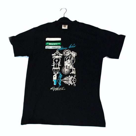 Featured is a fashionable T-shirt with a print on the front. It is black in color and is easy to mix and match with any clothing. The T-shirt is comfortable to wear and is suitable for sports activities.