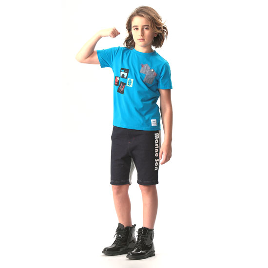 This short-sleeved T-shirt is designed for boys. It is made of 95% cotton and 5% PU for maximum comfort and high durability. This boys’ T-shirt comes with prints and embroidery details for an eye-catching look.
