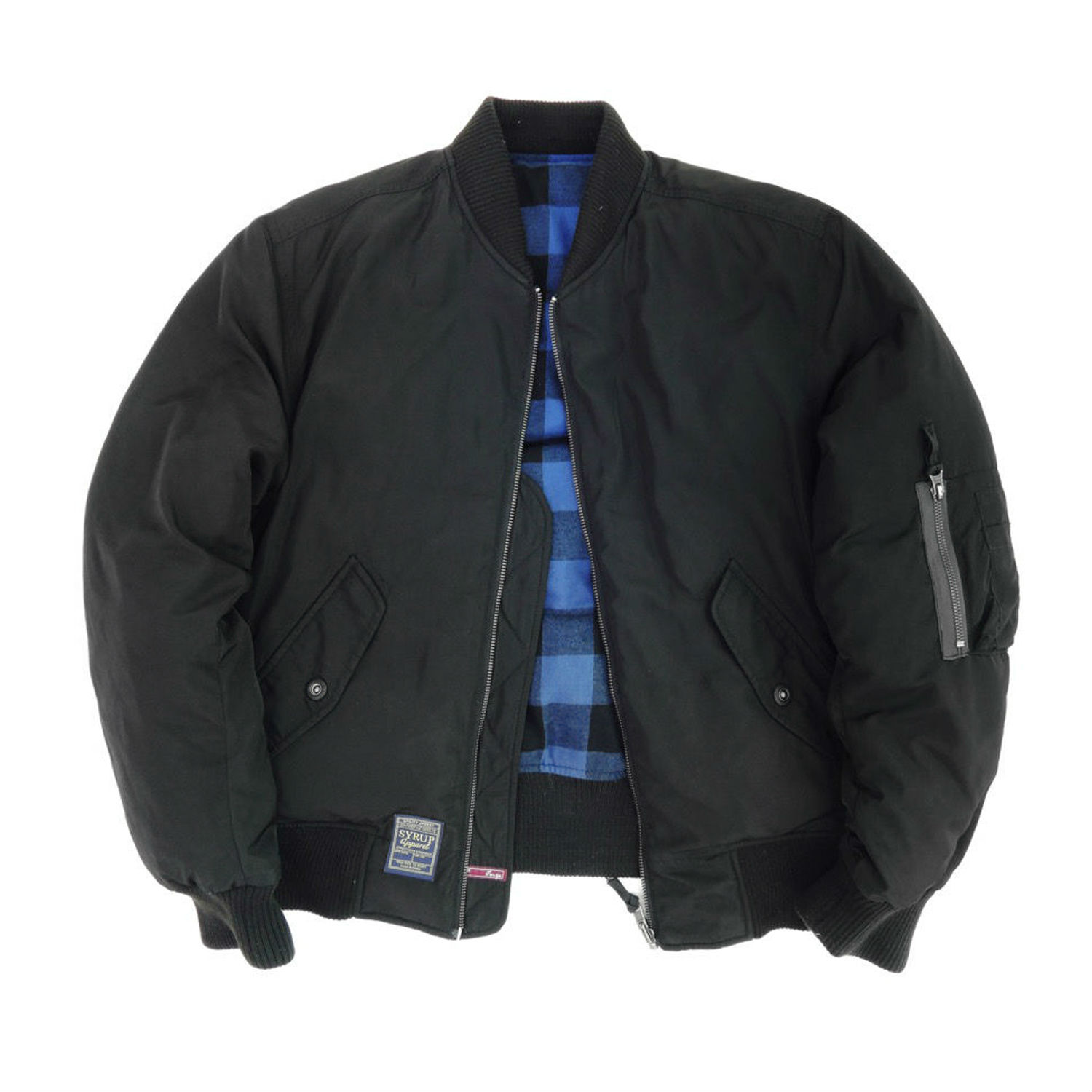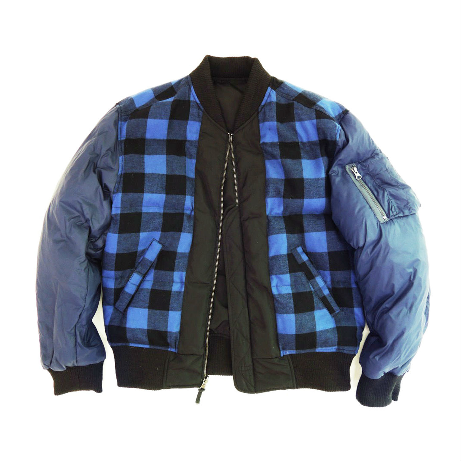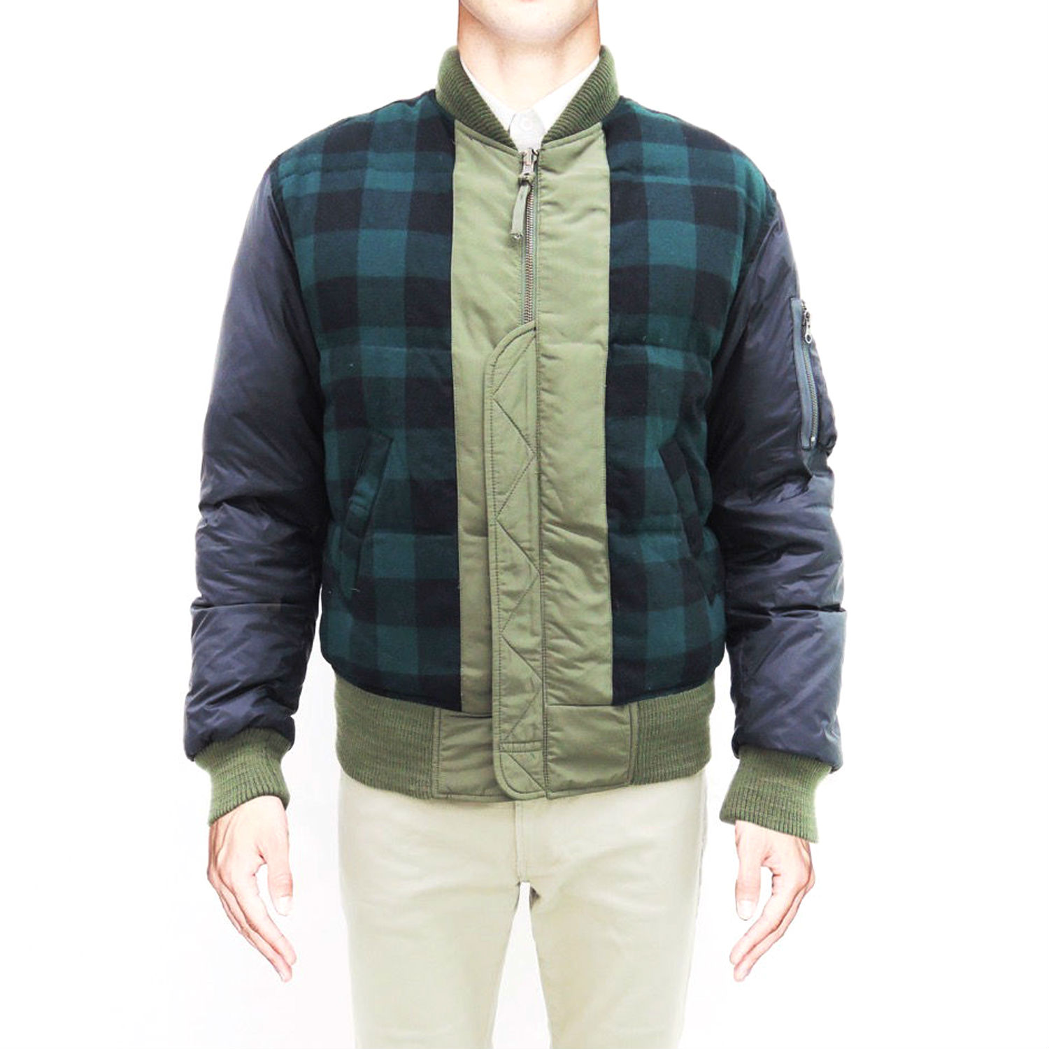 Not only does this bomber jacket protect you from the elements, it also offers a reversible construction for your styling. One of which features a mono-tone refined design with flap, buttoned pockets in the front, while the other side is crafted with large checkered motif on the chest panel. This stylish jacket is also elevated by its shawl collar, ribbed cuffs and ribbed hemline.
