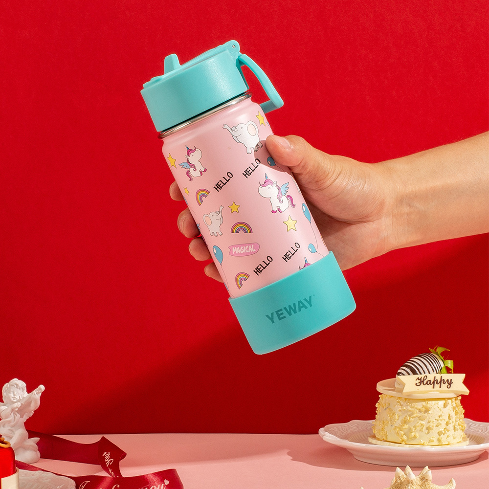 18/8 PREMIUM STAINLESS STEEL: The Yeway Kids Water Bottle is made of 18/8 Stainless steel that is 100% BPA free and non-toxic. It will never leave a metal taste or rust. Please give your child rest assured use, ease of company, let the water moisten your baby.