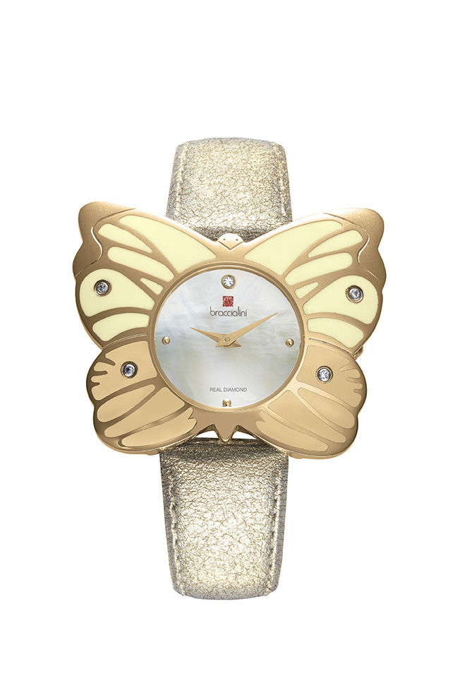 BUCKLE: Gold-plated steel, personalized with Braccialini logo