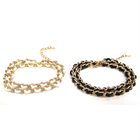 Give a tinge of elegance to your outfits by wearing this weave bracelet. The leather bracelet is constructed of intertwined gold-tone stainless steel chain and leather rope for a delicate sense. This tasteful and attractive leather bracelet accessorizes your look subtly.