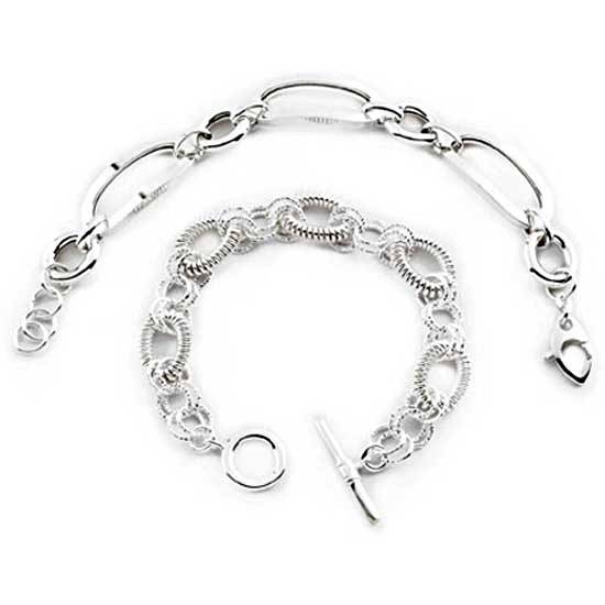 This set of gorgeous jewelry includes 2 bracelets with a silvery construction. They boast a beautiful chain-like design for a hint of uniqueness. Add this simple yet eye-catching bracelet set to your jewelry collection.