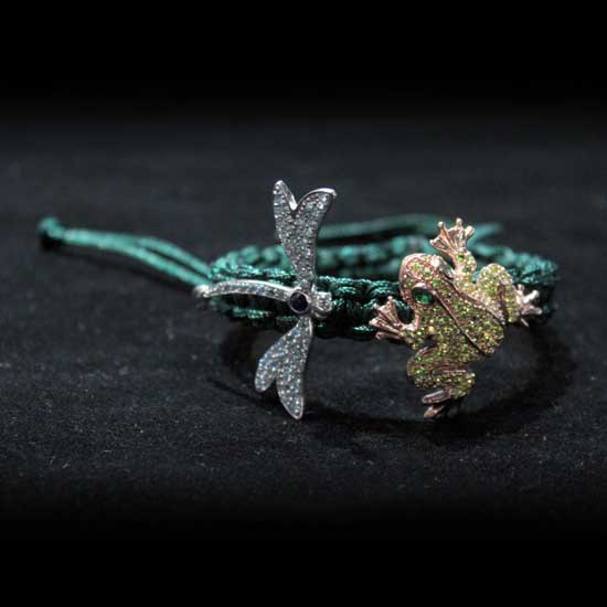 This stylish braided bracelet is accented with a dragonfly and frog charms. The silver charms are micro-paved with twinkling CZ stones. The chic bangle will surely enhance the beauty of your wrist.