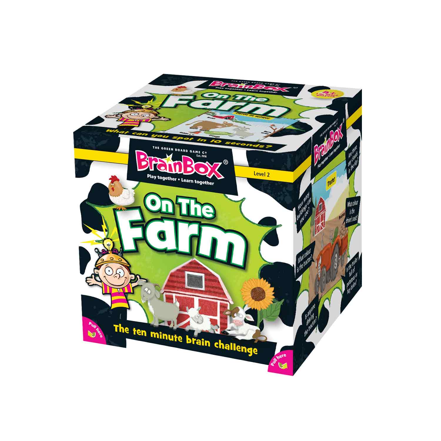 All the fun of the farm is presented in this BrainBox. Designed for parents to play with their children, this game will improve observation and memory skills. Each card shows a different aspect of farm life, including animals, buildings, vehicles and crops. So let's go down to the farm and see what we can find!