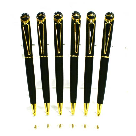 The ball pen flaunts an elegant design in black construction with golden parts. It provides smooth glide-on writing. This exquisite ball pen makes an exceptional gift item for your beloved.