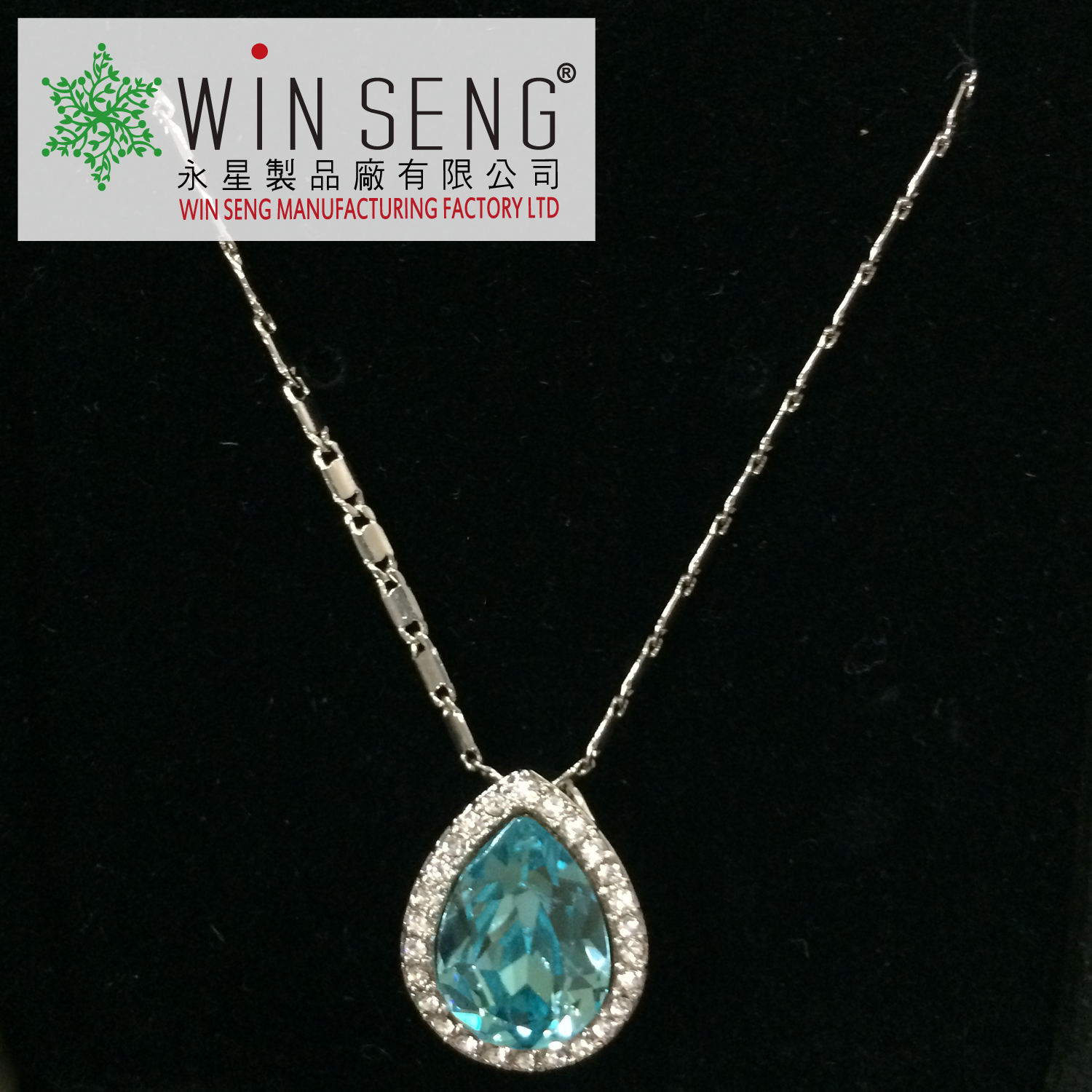 Brass Big Water Drop Gravel Blue Crystal Necklace