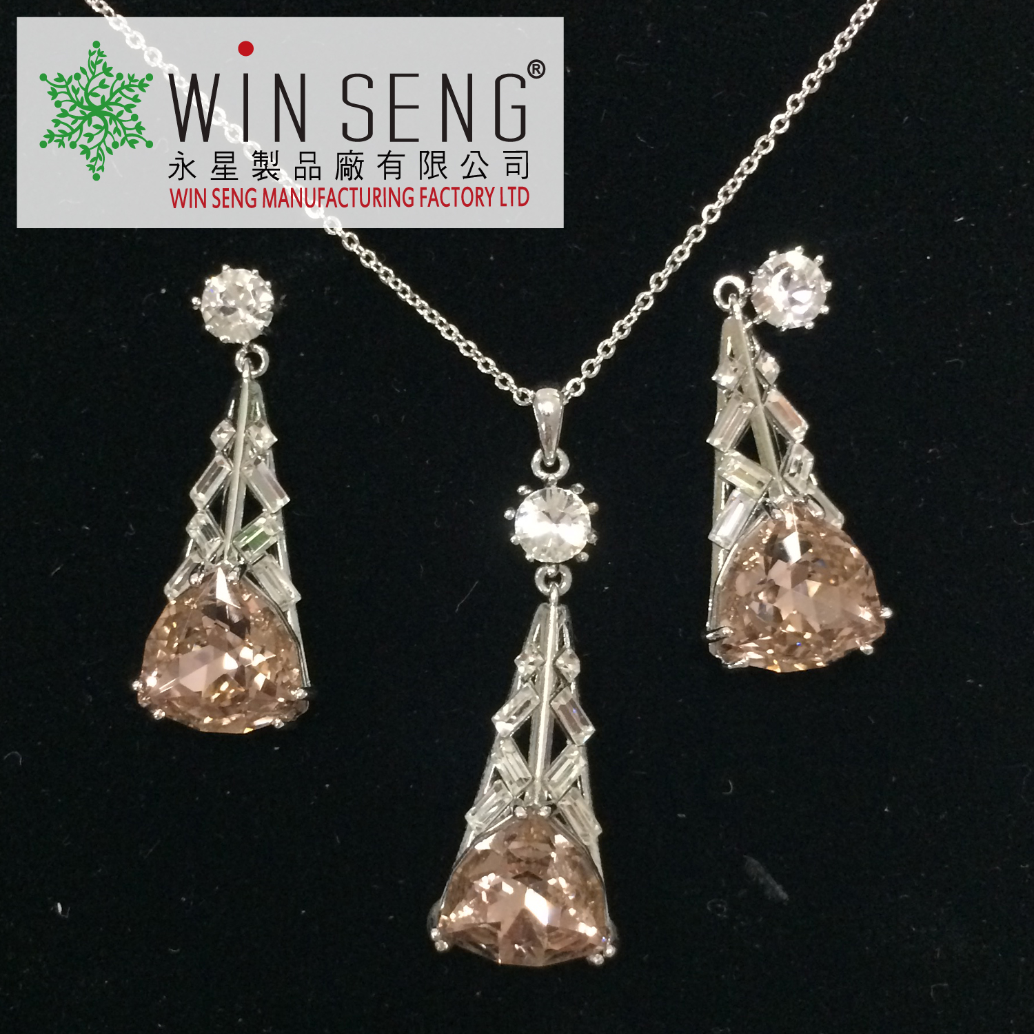 • Item Name: Brass cones pink crystal necklace with earrings set