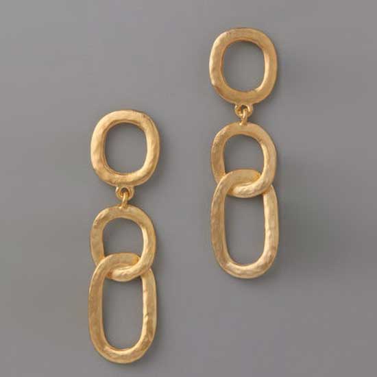 This pair of brass earrings flaunts a hammered finish to reveal a raw texture. The shimmering chain design conveys a chic and contemporary touch. Complete your stylish look with these exquisite earrings.