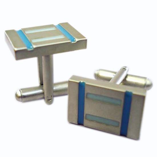 The cuff links come in rectangular shapes with stripes in blue. They are rhodium-plated for a pearly, refined finish. These cuff links are ideal for adorning your shirts and blouses.
