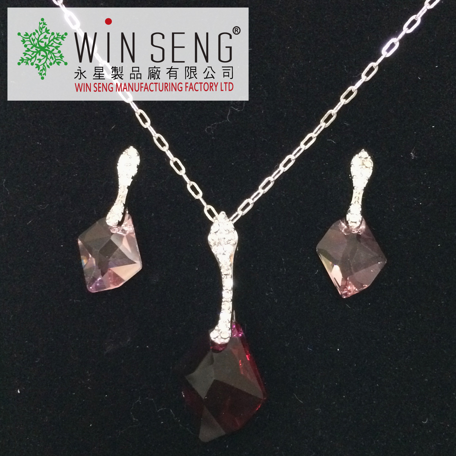 Brass Gravel Charm Red Crystal Necklace and Earring Set