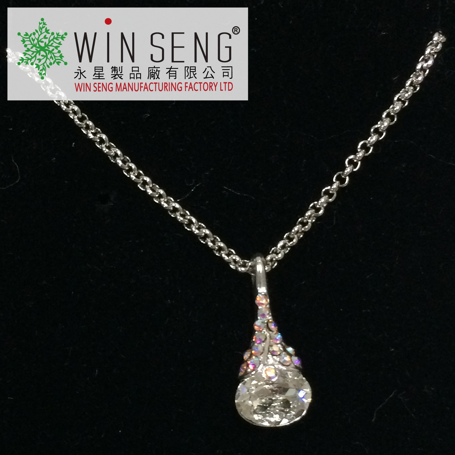 • Item Name: brass gravel cone white crystal necklace embellished with crystals from Swarovski