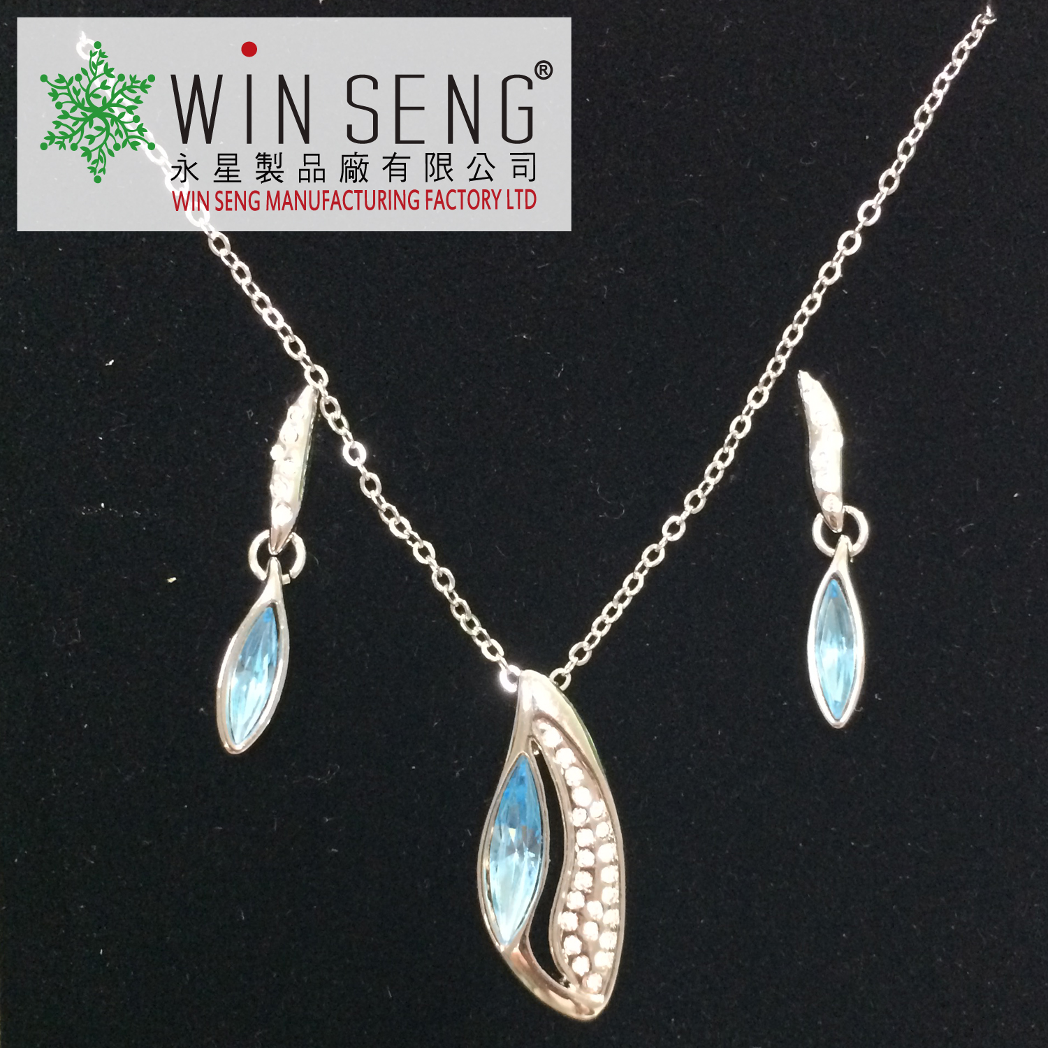 • Item Name: brass gravel oval blue crystal necklace with blue crystal earrings set
