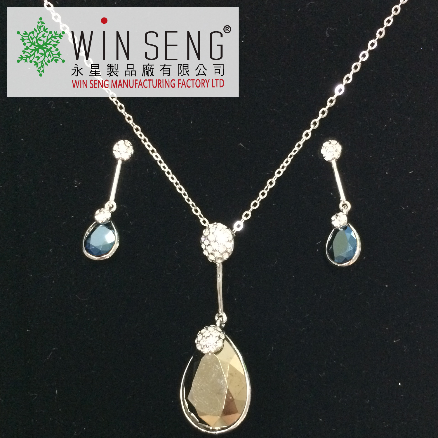• Item Name: brass gravel water drop yellow crystal necklace with Blue crystal earrings set