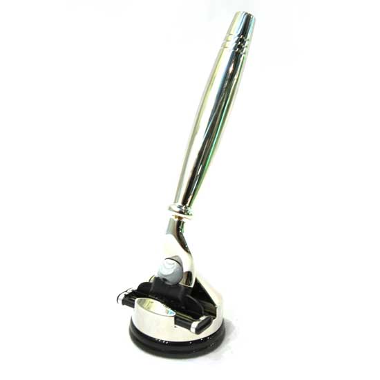 With a shiny, silver finish, this razor flaunts a classy look. Designed with a streamlined solid metal handle, this razor guarantees the user's comfort. Coming with a petite, circular stand, this sophisticated razor stands elegantly on any flat surfaces.