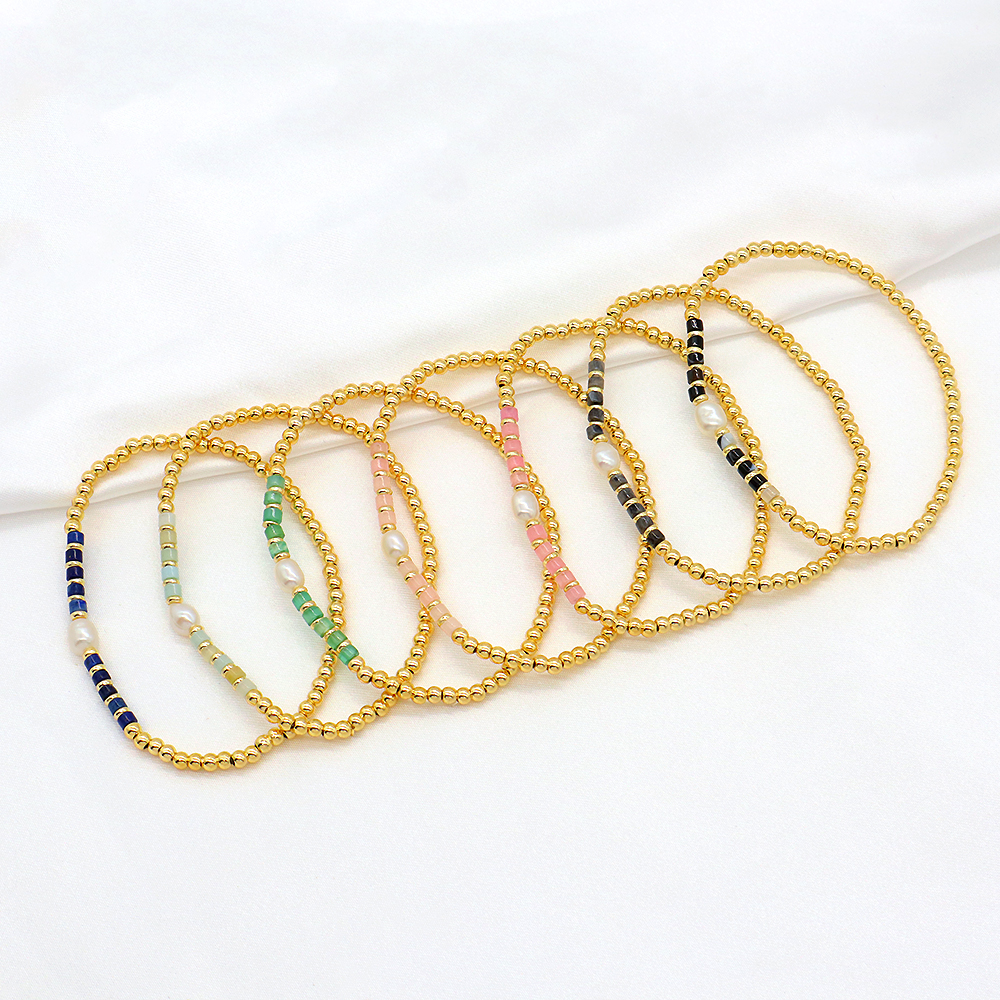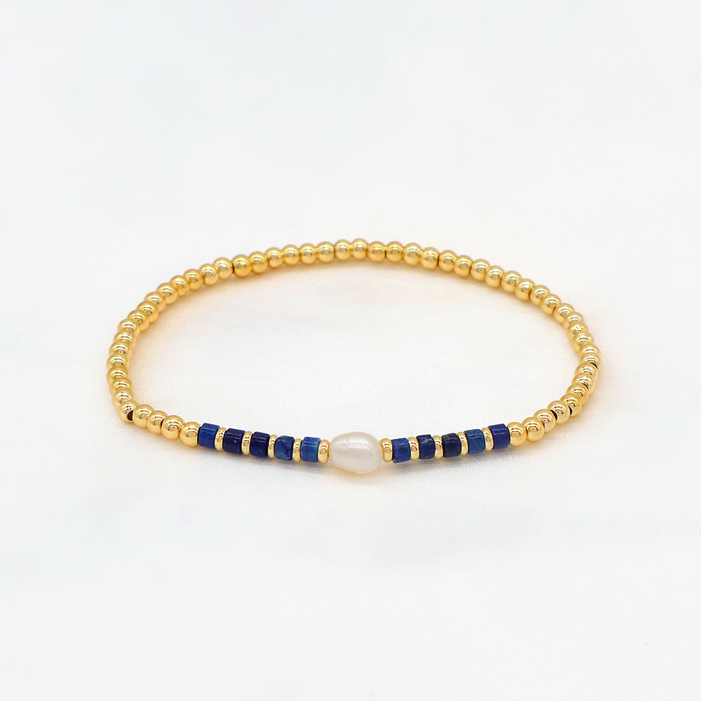 Material : 3mm Natural Stone Beads + 3mm Brass Beads + Fresh Water Pearl