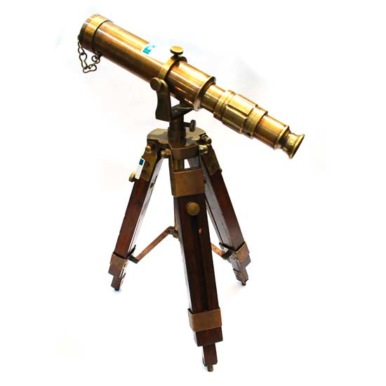 The decorative telescope is made of brass with a wooden base. The bronze finish gives it an antique touch. This telescope makes a great household decorative item.
