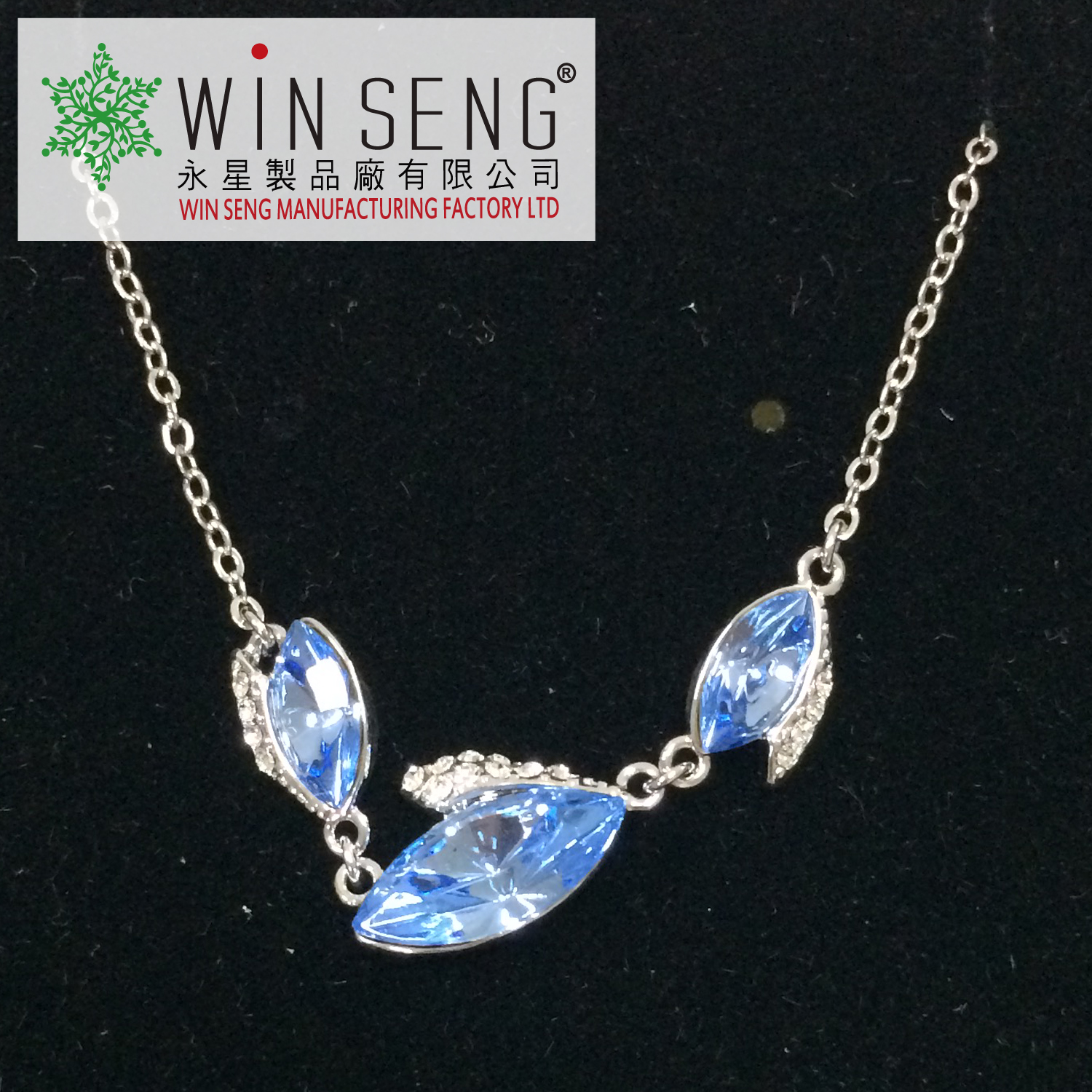 • Item Name: brass three oval blue crystals necklace embellished with crystals from Swarovski