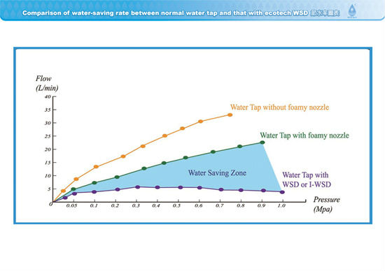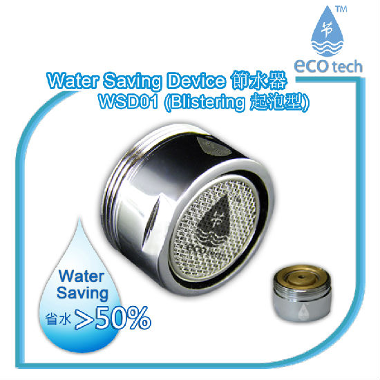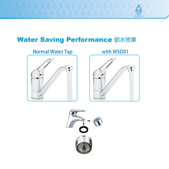 This water saving device (WSD) is our patent design and tailor-made for traditional water taps in order to provide water saving function at a low cost with efficiency. The WSD maintains a constant water flow by our patent design with a pressure compensation system (PCS), so that it can provide similar watering function at 4L/min when compare with the traditional water tap at 12L/min.