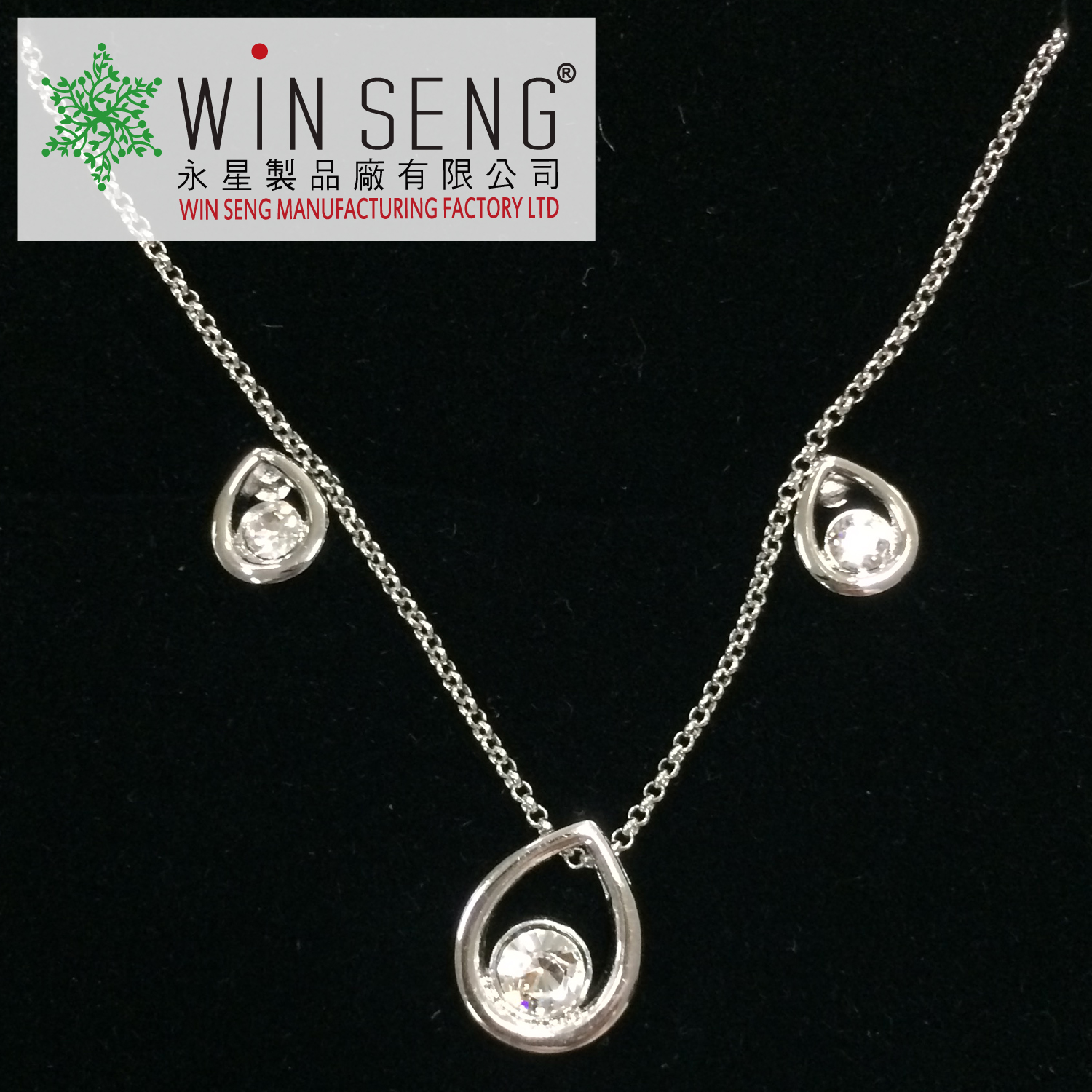 • Item Name: Brass hollow water drop with circle white crystal necklace and earring set