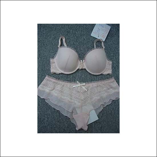 Showcased is a ladies’ undergarment set that consists of a demi-cup bra and panty. Featuring a pale pink tone, this underwear set flaunts a girly style with its elegant lace trimming and frill-like edges. Designed to provide comfort and support, this brassiere and brief set will make a great daily companion to you.