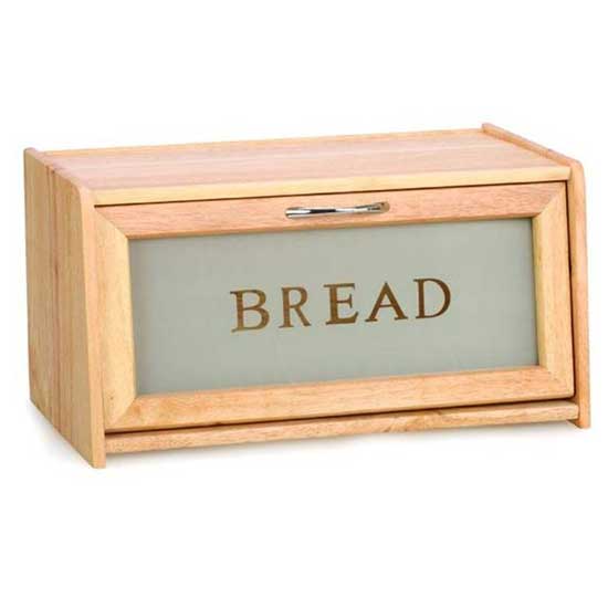 Displayed here is a bread box made of rubberwood and glass. It is finely made with delicate workmanship. This bread box is built to last for years.