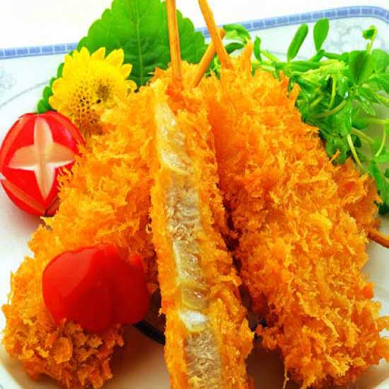The breaded pork skewer is made from safe meat source to guarantee superior quality. The sanitary processing procedures prevent it from contamination. This crispy and spicy breaded pork skewer is a great snack to refresh your day.