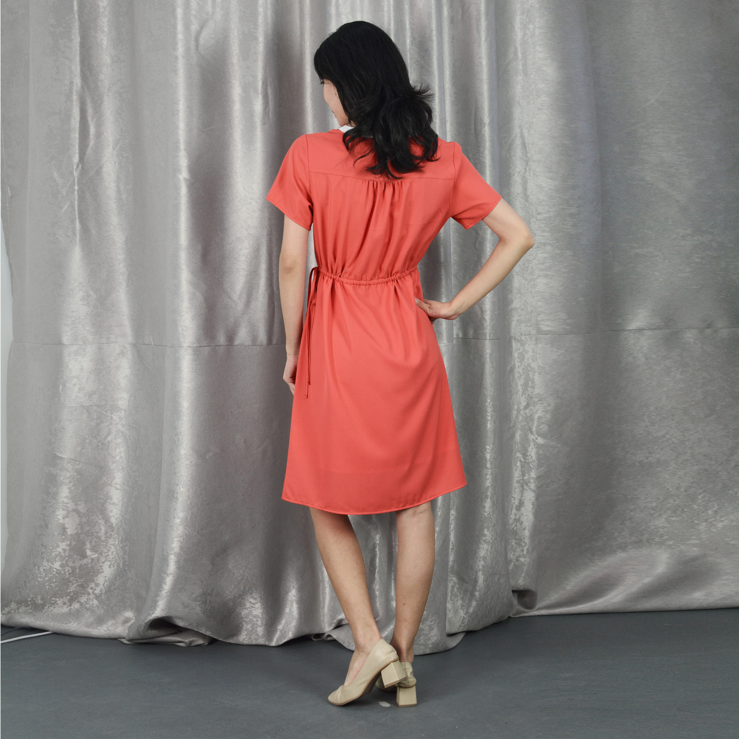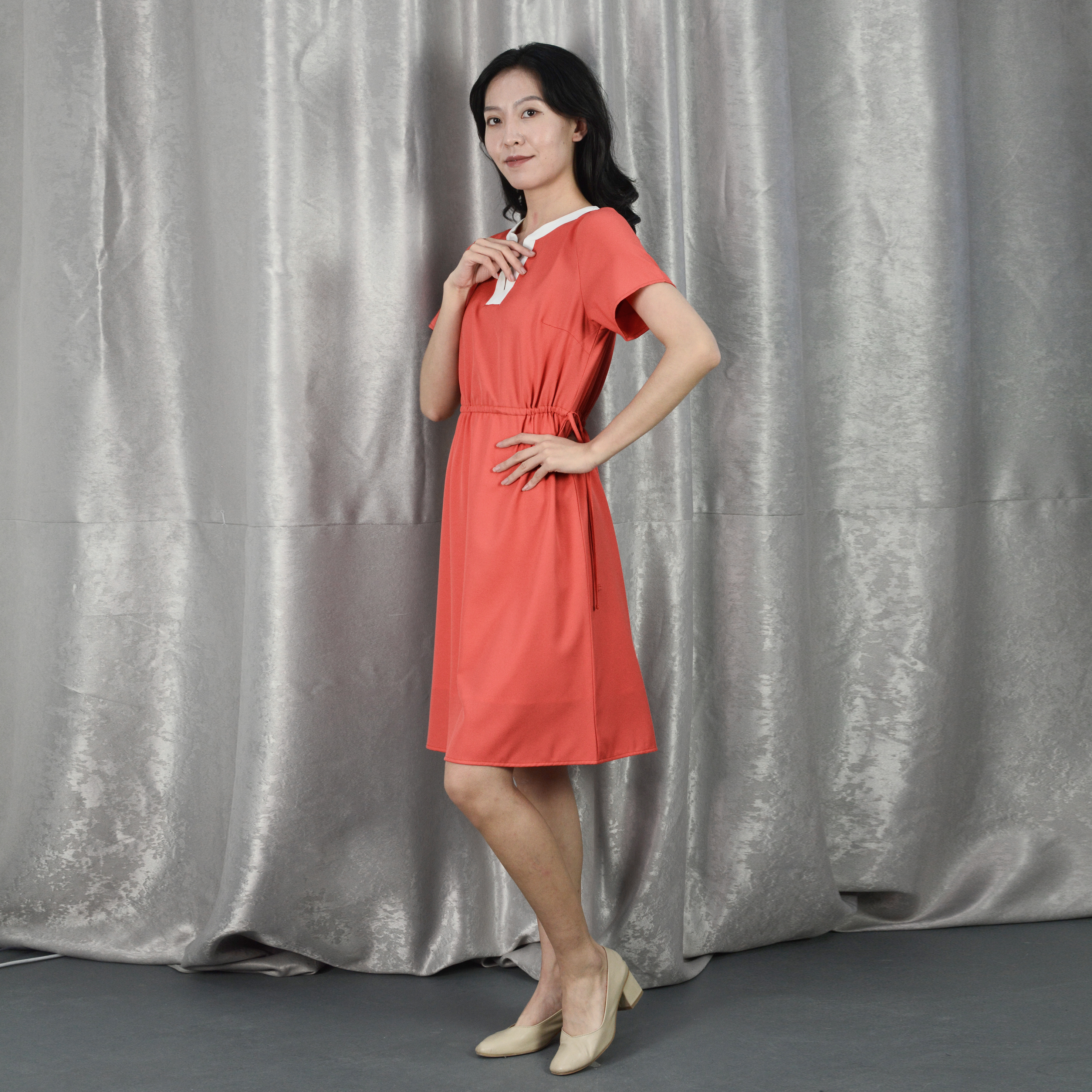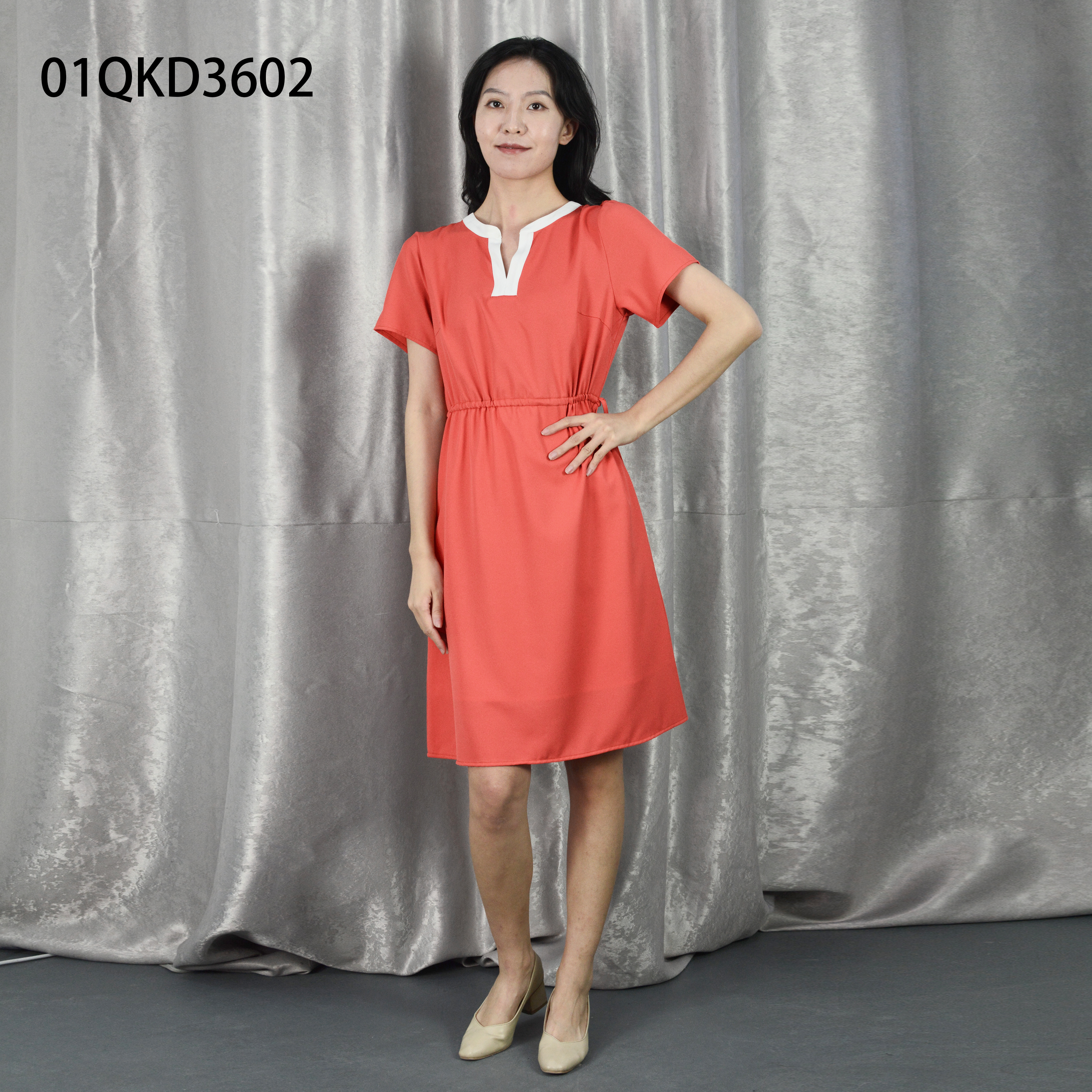 Breathable Fabric Patchwork V-Neck Knee-Length Short Sleeve Dress