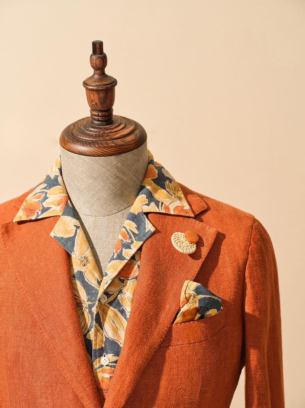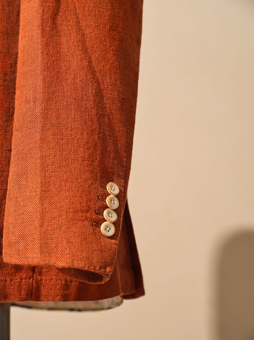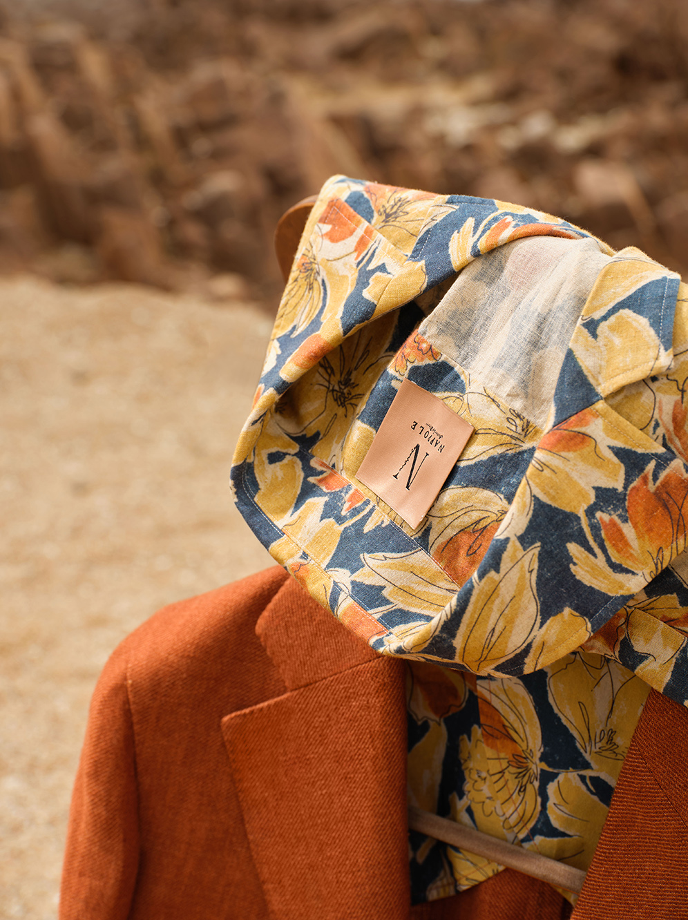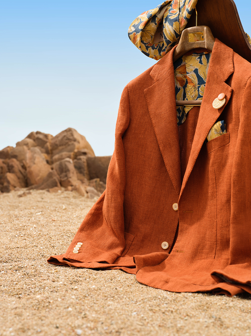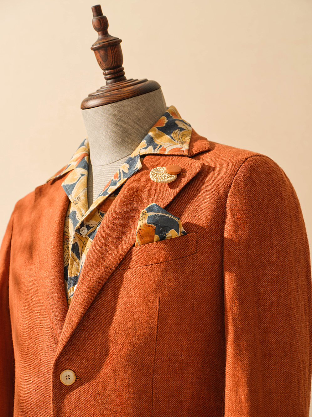 This brand-new burnt red blazer features an unlined design with a slightly wider and longer silhouette, adding a casual charm to the overall look.