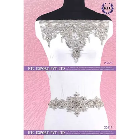 The bridal gown trimming is crafted with crystals and stones for a sparkling touch. The exquisite craftsmanship of fine details showcases Victorian flair. Enhance the appeal of bridal gowns with this crystal trimming.