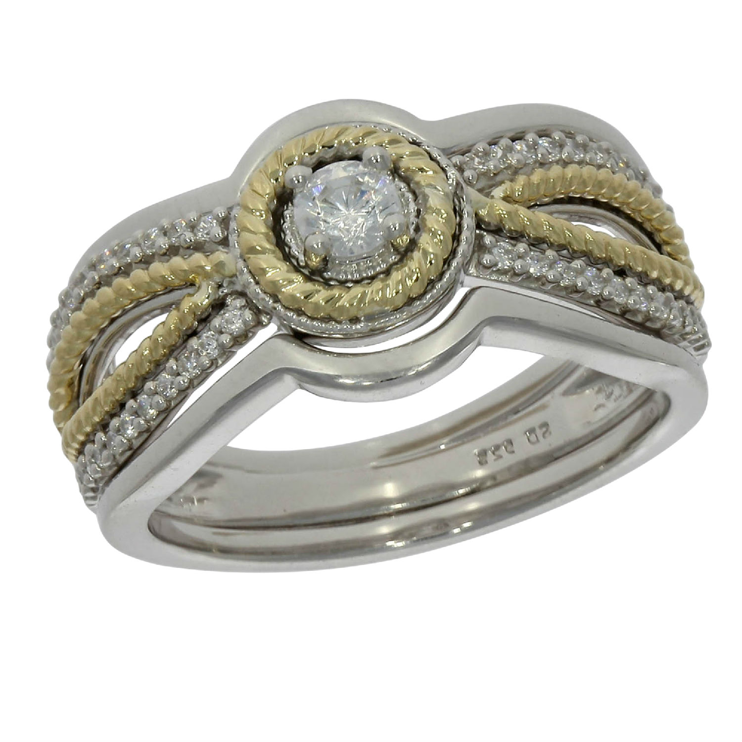 • This bridal ring with two tone and rope effect rightly signifies the commitment and the promise that you make to each other.