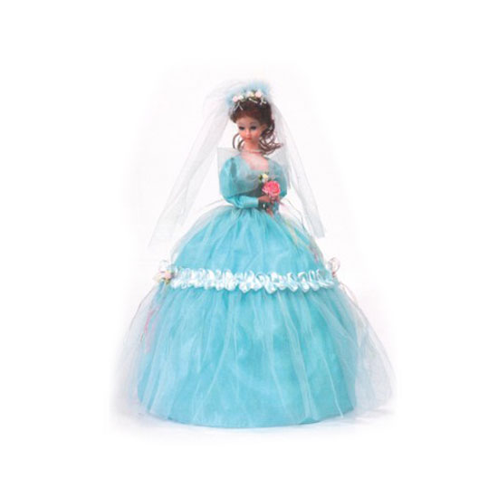 This bride doll is dressed in an attractive gown in blue. The doll is finely designed with a chic hairstyle. This alluring doll is a great choice as a gift for girls.