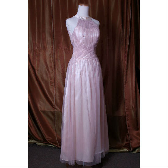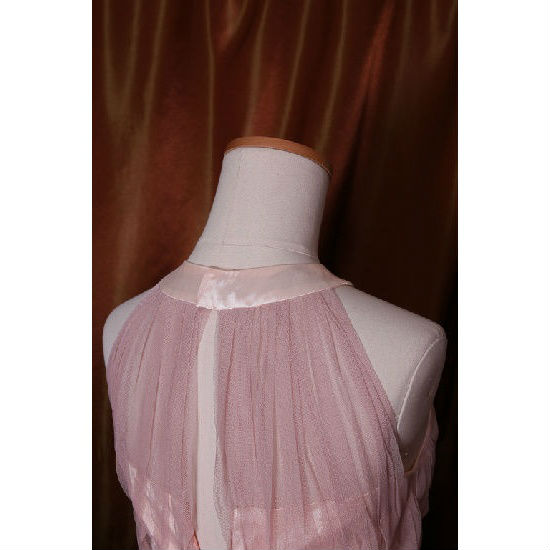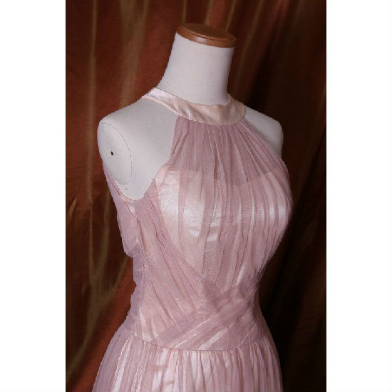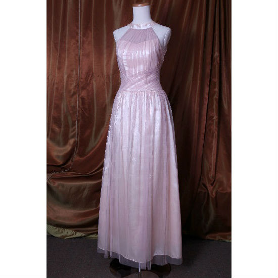 Dazzling in a lovely pastel color, this bridesmaid dress features a slim A-line shape with a fitted bodice, round neckline, and flared skirt with floor-sweeping hem. The tulle with the satin underlay creates a soft, feminine effect that will complete your romantic look perfectly.