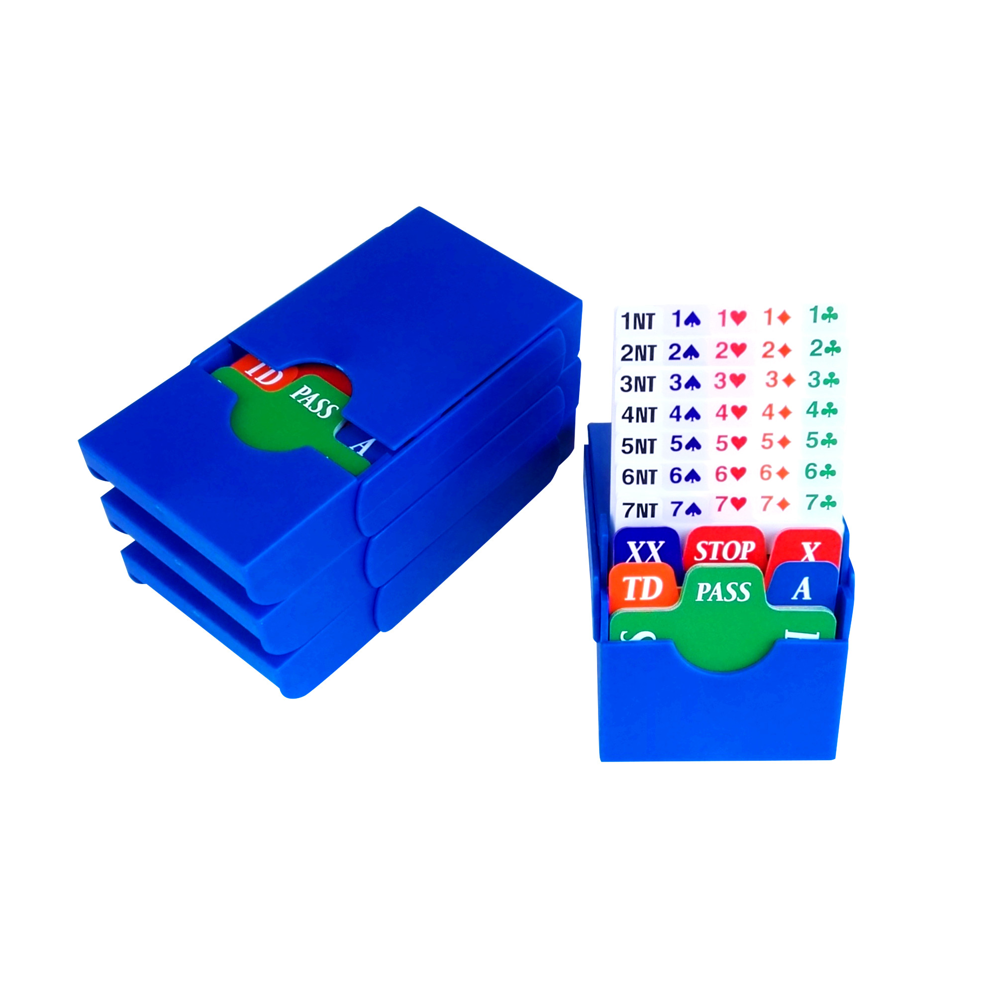 DURABLE PLASTIC BIDDING CARDS: It includes durable and waterproof plastic bidding cards inside each bridge bidding box.The bidding cards actually last longer than regular paper bidding cards. Besides, the plastic bidding cards are waterproof. When coffee,wine,water and tea are accidentally spilled on the bridge card, it remain stands! Just simply use napkin paper to dry it,it would become as dry as before!