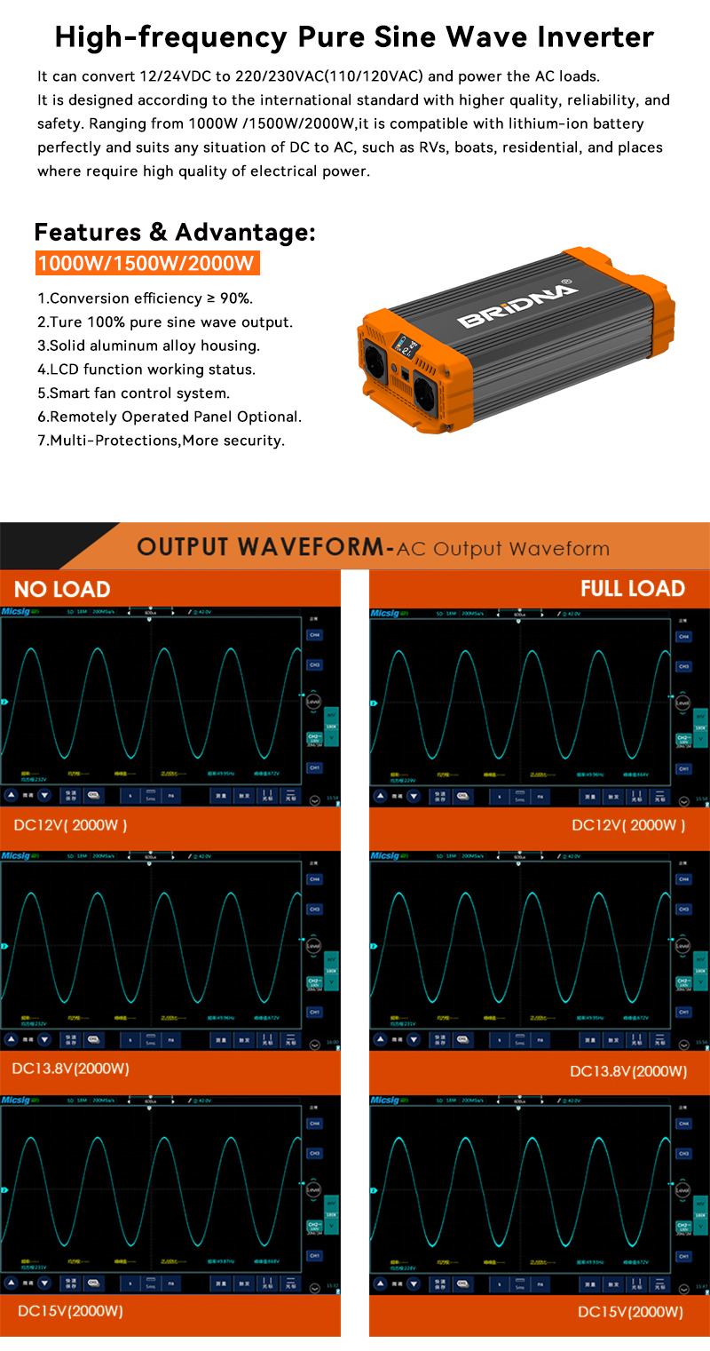 Bridna 2000w pure sine wave power inverter